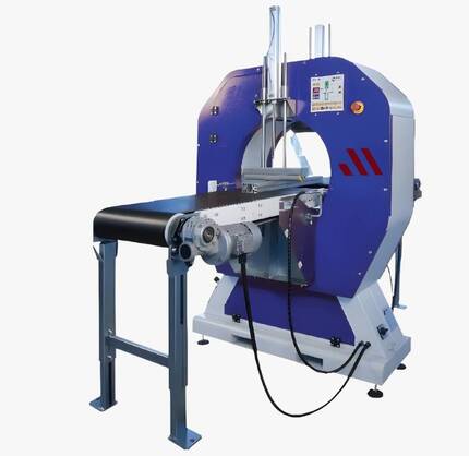 METCO CSO 1000 A is a fully automatic horizontal stretch wrapper with 1000 mm ring diameter, ideal for securely bundling and protecting long products. It features automatic film clamping and cutting, mechanical brake film holder (125-250 mm width), frequency-controlled winding speed up to 90 rpm, and photo-sensor start/stop for seamless, hands-free operation.