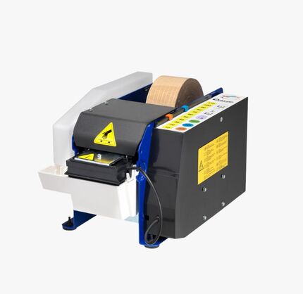 The LAPOMATIC dispenser from METCO is electric and designed for gummed tape, featuring a water-resistant control panel for high-volume sealing. It cuts tape to the desired length with precision and operates quietly, with a durable, low-maintenance design.