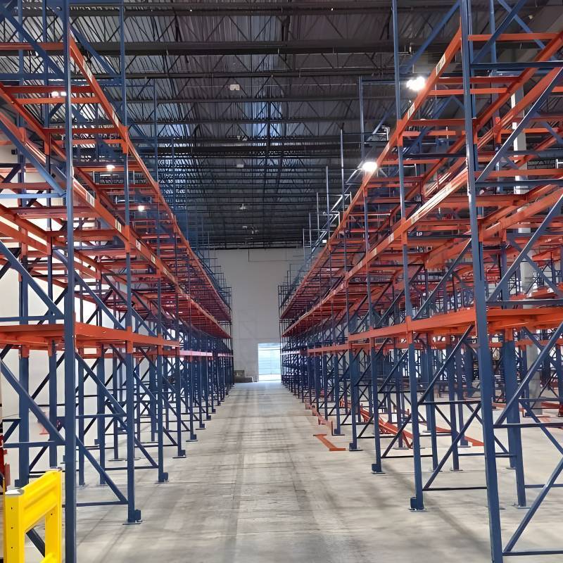 All racking rows 1–18 have been fully erected, beamed, fitted with safety bars, squared, levelled, string-lined, pinned and anchored. All lower (B) elevations, bullnose protectors and row-end protectors are installed. A complete site cleanup has been performed, aisles are clear and the final quality assessment has been successfully completed.