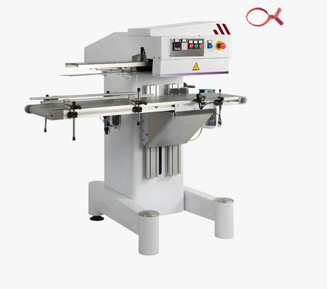 METCO A104TS Automatic top sealing machine with METCO plastic twist band applicator for fresh-saver closure on preformed filled bags. Manual bag infeed onto conveyor; cycle starts via photocell.